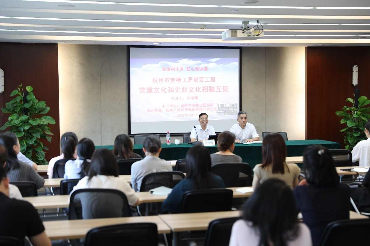 7月8日下午,為大力弘揚(yáng)勞模精神、勞動(dòng)精神、工匠精神,杭州工商信托工會(huì)積極響應(yīng)杭州市總工會(huì)組織開展的2025年度勞模工匠“雙百工程”活動(dòng),特邀市勞模、市五一勞動(dòng)獎(jiǎng)?wù)芦@得者、余杭區(qū)兼職工會(huì)副主席畢海明老師聚焦“黨建文化和企業(yè)文化相融互促”主題,開展專題培訓(xùn)。公司黨員、工會(huì)委員、工會(huì)組長等近50位員工參會(huì)。
