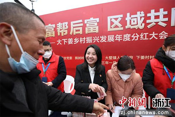 共富路上一個(gè)都不能少。近日,在淳安縣楓樹(shù)嶺鎮(zhèn)下姜村舉行的大下姜鄉(xiāng)村振興發(fā)展年度分紅大會(huì)上,懷揣股權(quán)證、手拿大紅包的“股民”中,來(lái)自大下姜區(qū)域31個(gè)村的低收入農(nóng)戶代表笑得最甜。這也是大下姜鄉(xiāng)村振興聯(lián)合體成立以來(lái),首次為低收入農(nóng)戶發(fā)放紅利。