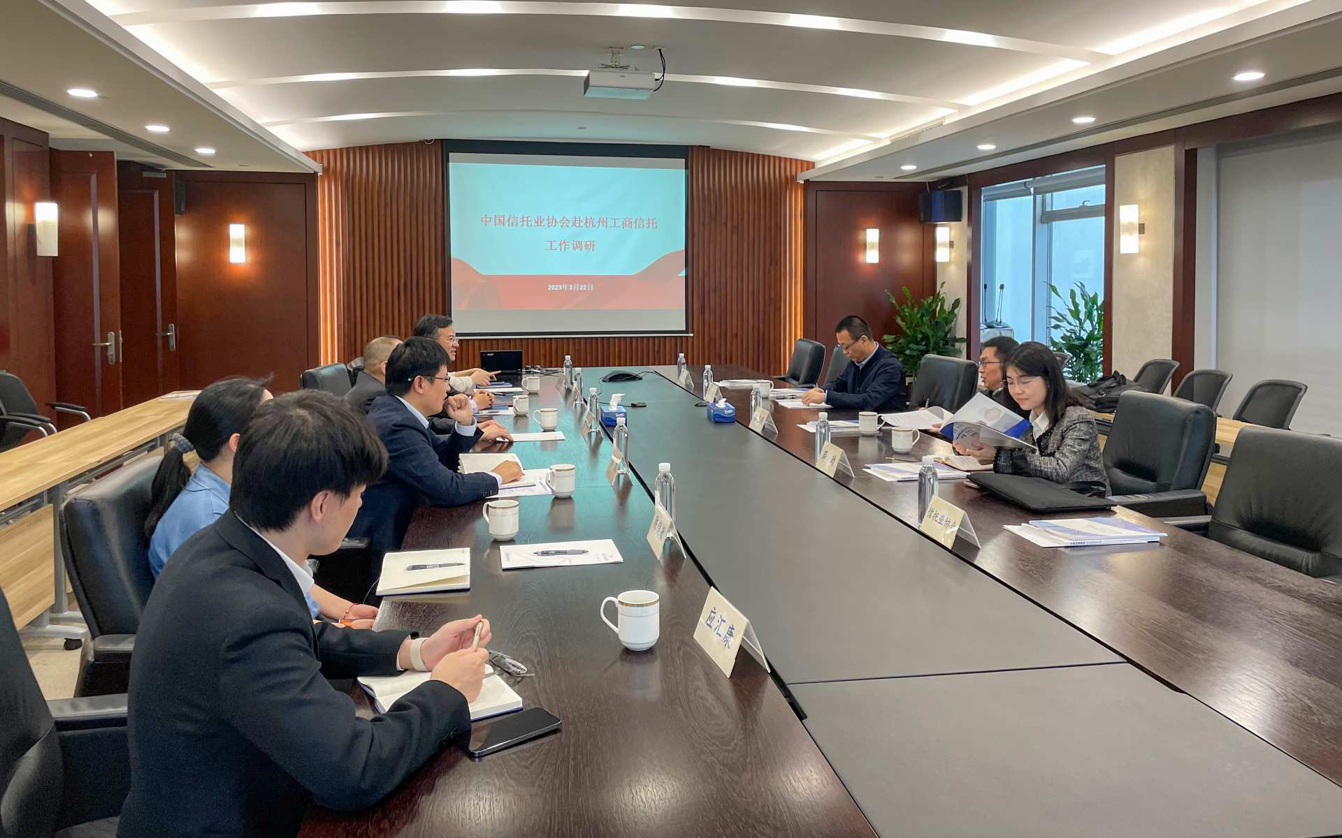 近日,中國(guó)信托業(yè)協(xié)會(huì)黨委書記、專職副會(huì)長(zhǎng)(常務(wù))漆艱明一行蒞臨杭州工商信托開(kāi)展調(diào)研座談,中國(guó)信托業(yè)協(xié)會(huì)辦公室(黨辦)主任薛晴、自律與監(jiān)管協(xié)調(diào)部主任韓志堅(jiān)陪同調(diào)研。杭州工商信托黨委書記余南軍、總裁江龍、副總裁馮蔚蔚、首席財(cái)務(wù)官陳凱及相關(guān)部門負(fù)責(zé)人參加座談會(huì)。