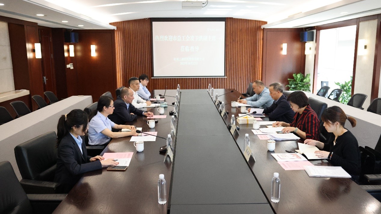 10月12日上午,杭州市總工會黨組成員、副主席凌衛(wèi)洪,市金融工會主任楊曉紅、副主任楊秀元一行蒞臨杭州工商信托,宣傳貫徹《習近平關(guān)于工人階級和工會工作論述摘編》和中國工會十八大精神,并調(diào)研指導公司工會構(gòu)建新時代和諧關(guān)系建設工作。公司黨委書記、董事長余南軍,工會主席徐惠鋒、綜合部(黨群工作部)負責人等有關(guān)人員陪同交流。