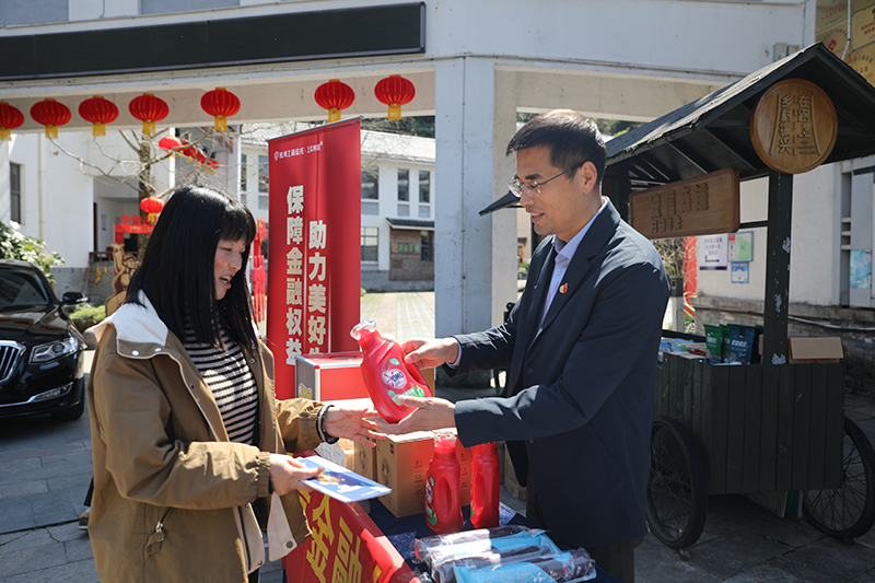 時值2025年“3·15”金融消費(fèi)者權(quán)益保護(hù)教育宣傳活動期間,杭州工商信托股份有限公司積極響應(yīng)監(jiān)管部門號召,3月17日下午,由黨委副書記、總裁蔣碧湖、黨委委員、副總裁馮蔚蔚帶隊(duì)的“3·15”宣傳志愿服務(wù)隊(duì)赴淳安縣下姜村開展“保障金融權(quán)益 助力美好生活”專項(xiàng)宣傳活動。