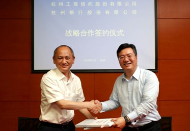 6月25日下午,杭州工商信托股份有限公司與杭州銀行股份有限公司戰(zhàn)略合作簽約儀式在杭州銀行總行成功舉行。杭州銀行行長(zhǎng)宋劍斌、副行長(zhǎng)丁鋒,杭州工商信托總裁江龍、副總裁汪勇、馬曉濤、康波等領(lǐng)導(dǎo)出席了簽約儀式。